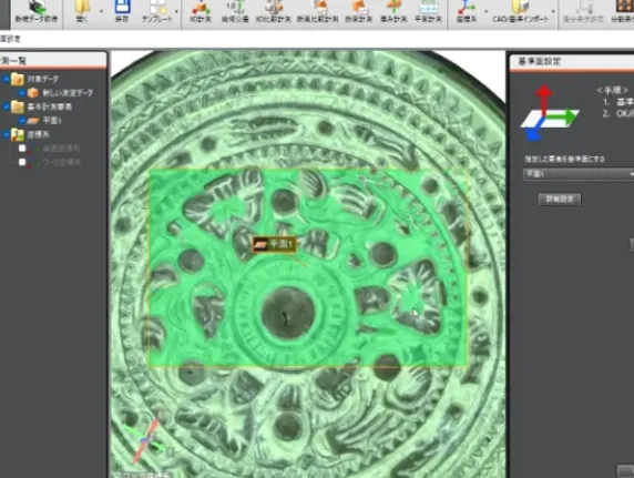 測定範囲はφ300mm × H200mm。神獣鏡のレプリカ全体を一度のスキャンで捉えることができます。VL-800が担ったのは、「地図を描くこと」でした。